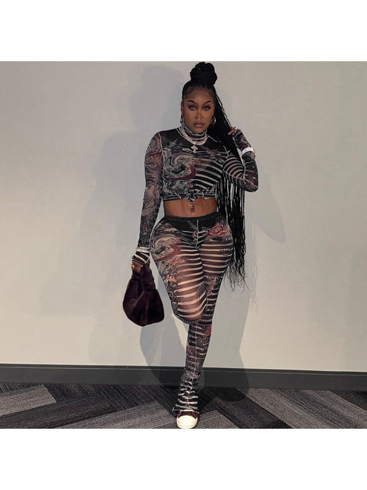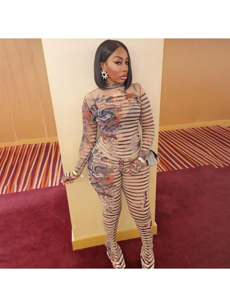 It's fitted design Striped Letter Pattern See Through Trouser Sets for women to show energetic temperament. It is made of good quality 90% polyester fabric, soft, flexible, wear comfortable.This material gives you comfortable feeling, high quality, fashionable & comfortable. This cheap Co-ords is very popular and fashion design, we believe you will love it very much!